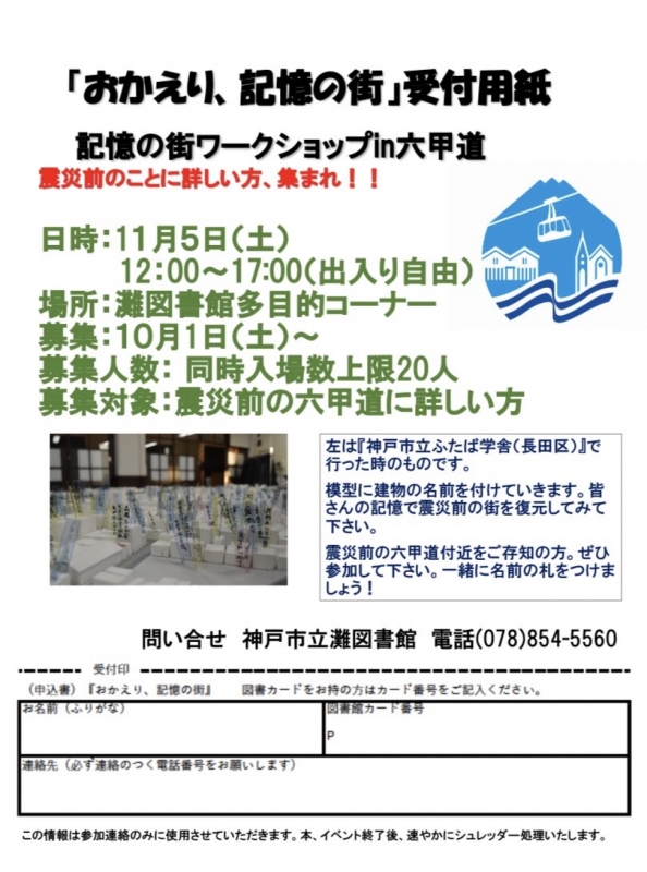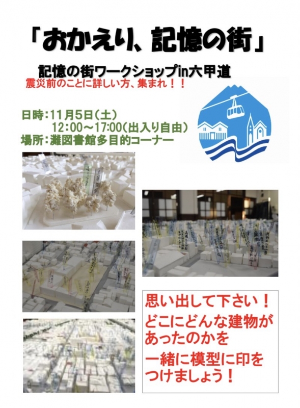 2012年に製作し灘図書館に寄贈した、阪神・淡路大震災以前の六甲道の復元模型1pixelを使った記憶の街ワークショップを、昨年に引き続き今年度も開催しました。