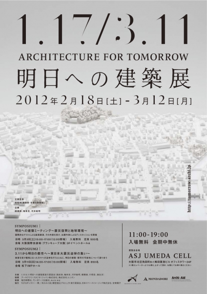 | 協力 | TOTOギャラリー・間、日本スペースイメージング株式会社、 東日本大震災における建築家による復興支援ネットワーク(アーキエイド) [衛星写真提供] GeoEye/日本スペースイメージング(株) |