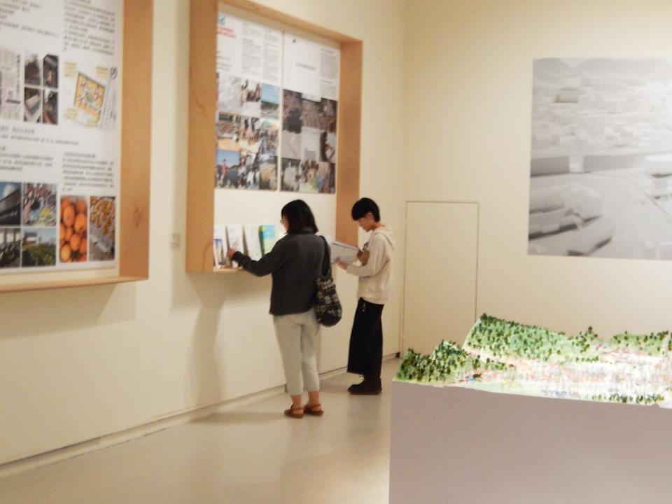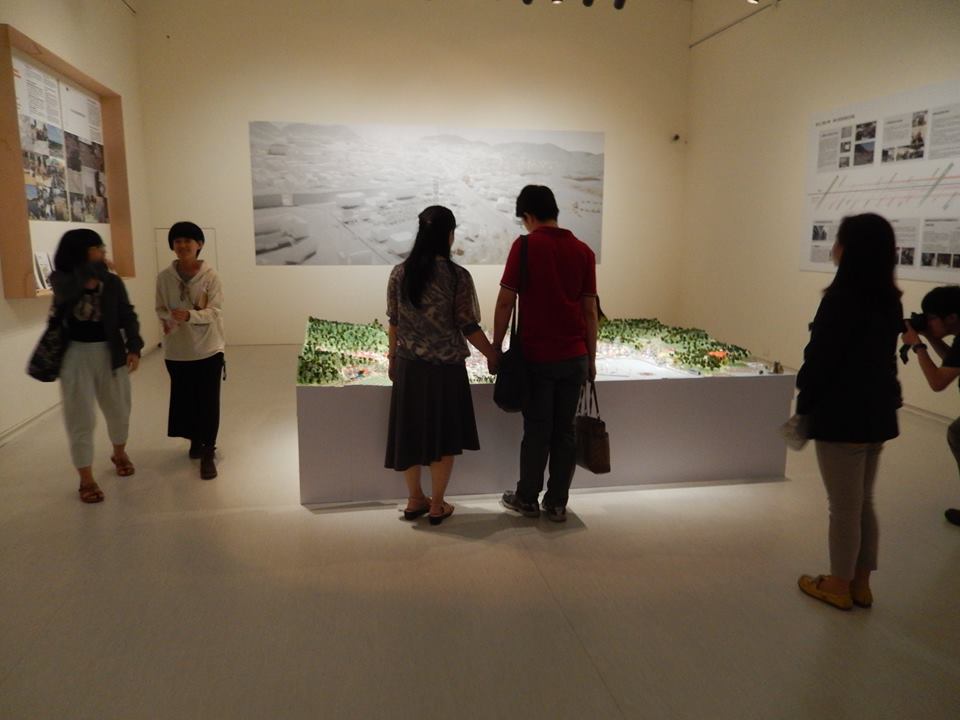 台湾での巡回展を開催するにあたり、3.11に東日本大震災を通して学生は何を学び、経験し、行動してきたのか、また、建築を学んでいる学生と社会との関わり方をどのようにして行ってきたのか。この思いを模型やパネル、映像、写真等を通して台湾の人達に伝えることを目的に、にて8月17日まで展示されています。写真は台北市立美術館での田老模型の展示の様子です。