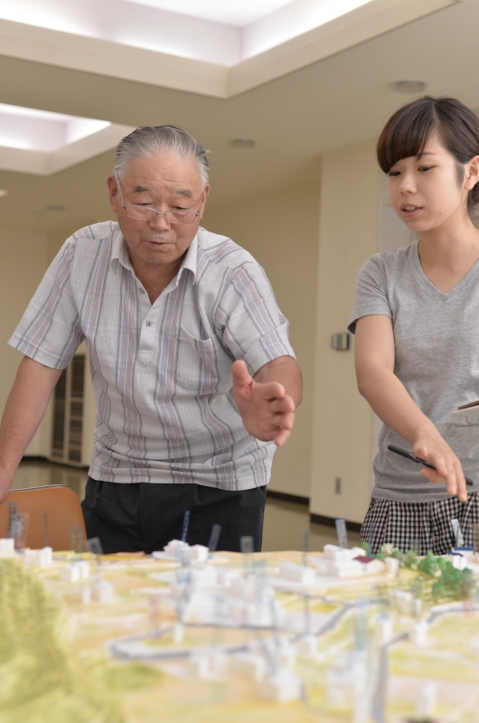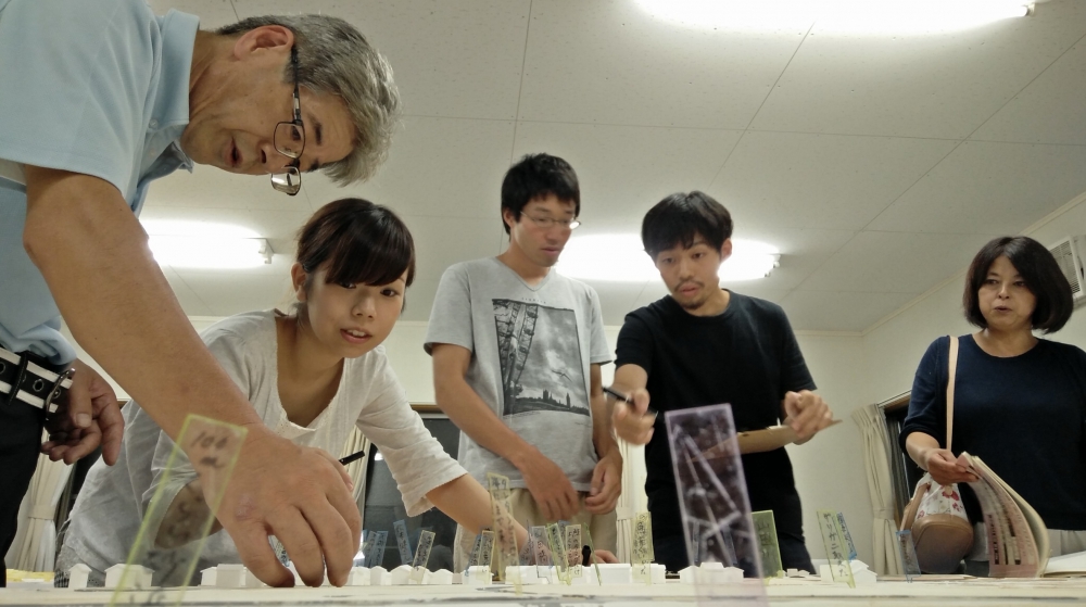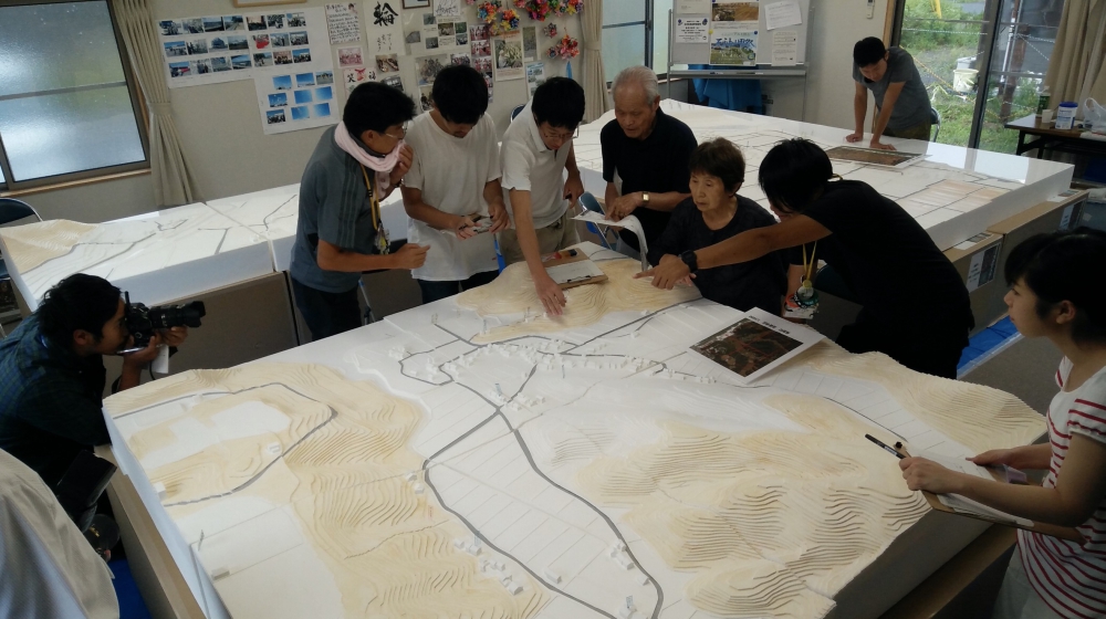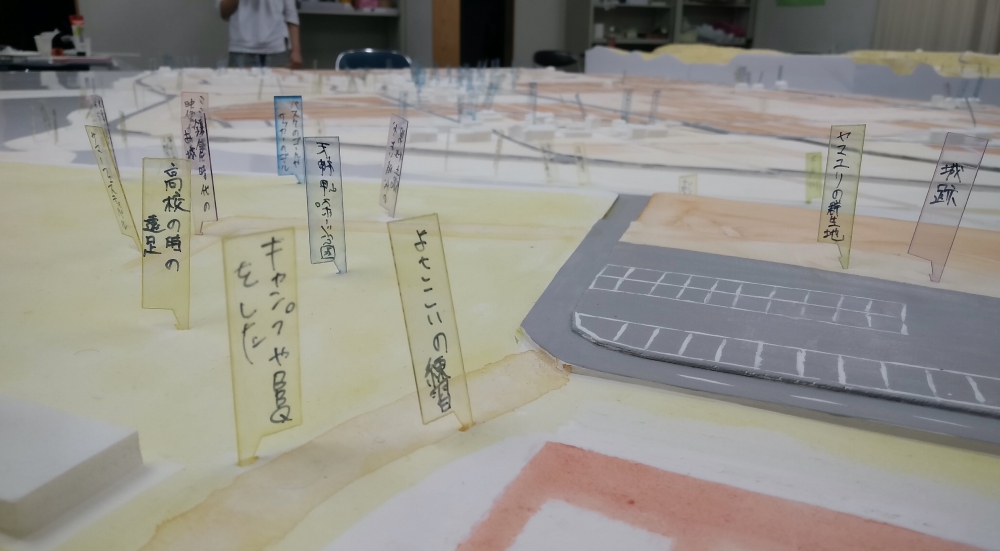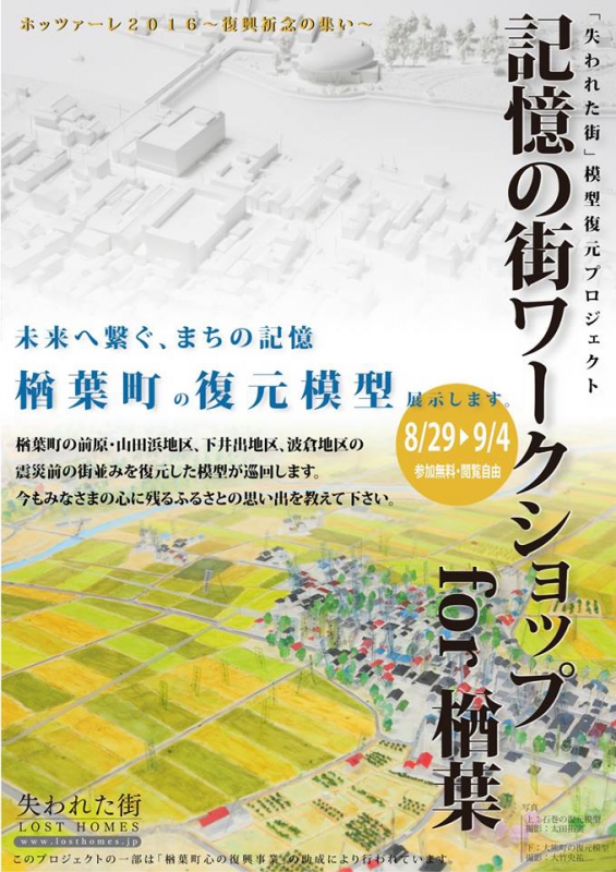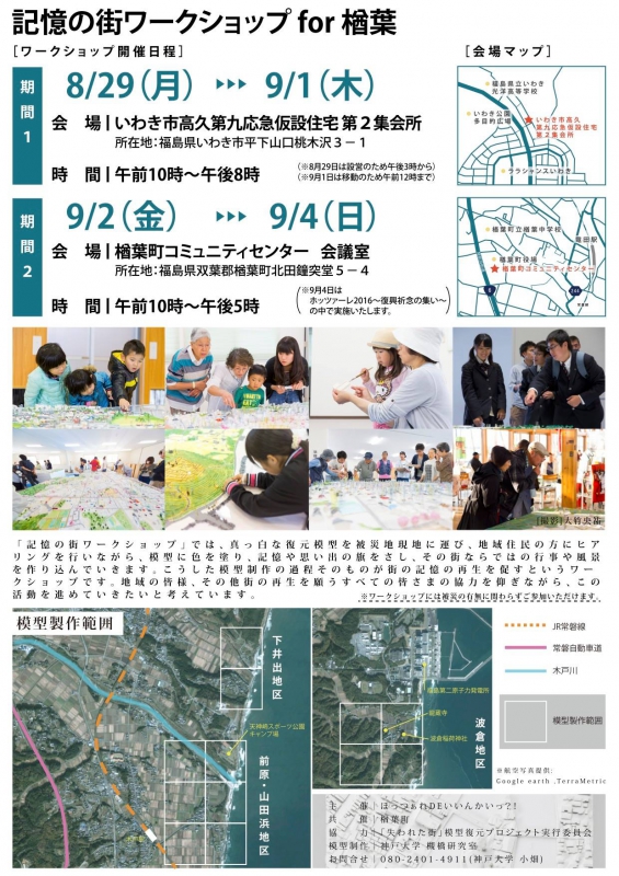 まちの記憶を未来へ繋ぐために、「ホッツァーレ2016〜復興記念の集い〜」に合わせて神戸大学槻橋研究室で楢葉町の浸水エリア(下井手、前原・山田浜、波倉の3地区)の模型を新たに製作し、記憶の街ワークショップを実施しました。