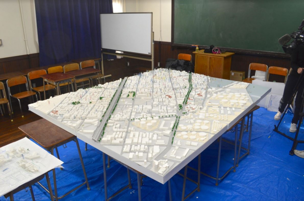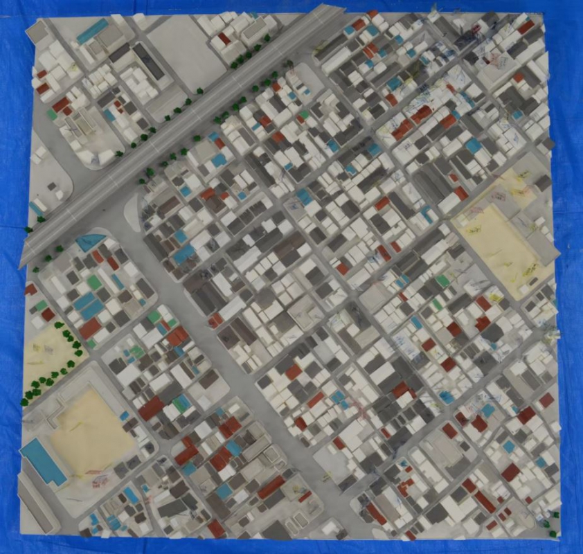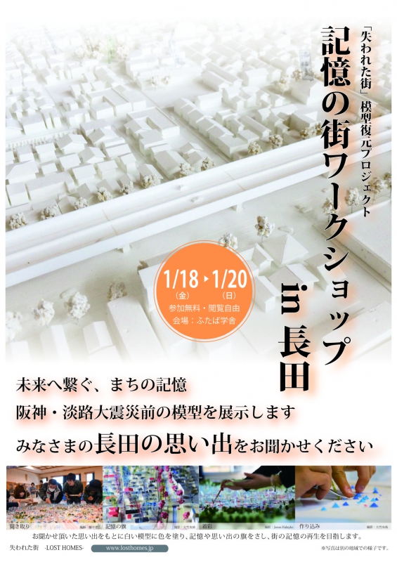 神戸市長田区で阪神淡路大震災の被災地区の再現模型を展示しました。 2012年6月制作した鷹取地区の模型に加え、さらに駒ヶ林地区周辺の模型を追加制作しました。