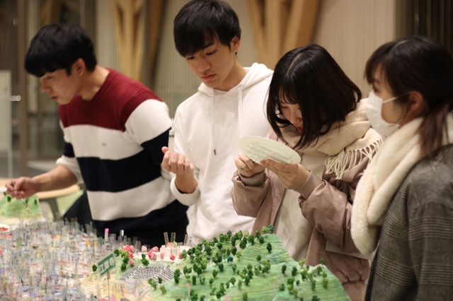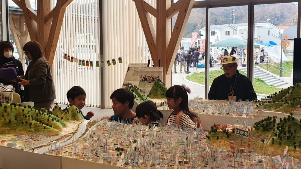 地元で行われている食で交流を生み出すイベント「おしゃっち横丁」と合わせて開催し、同時に近隣保育園の園児達による和太鼓の演奏会を特別会開催して頂くことで、大変多くの方々に模型を見て頂くことができました。