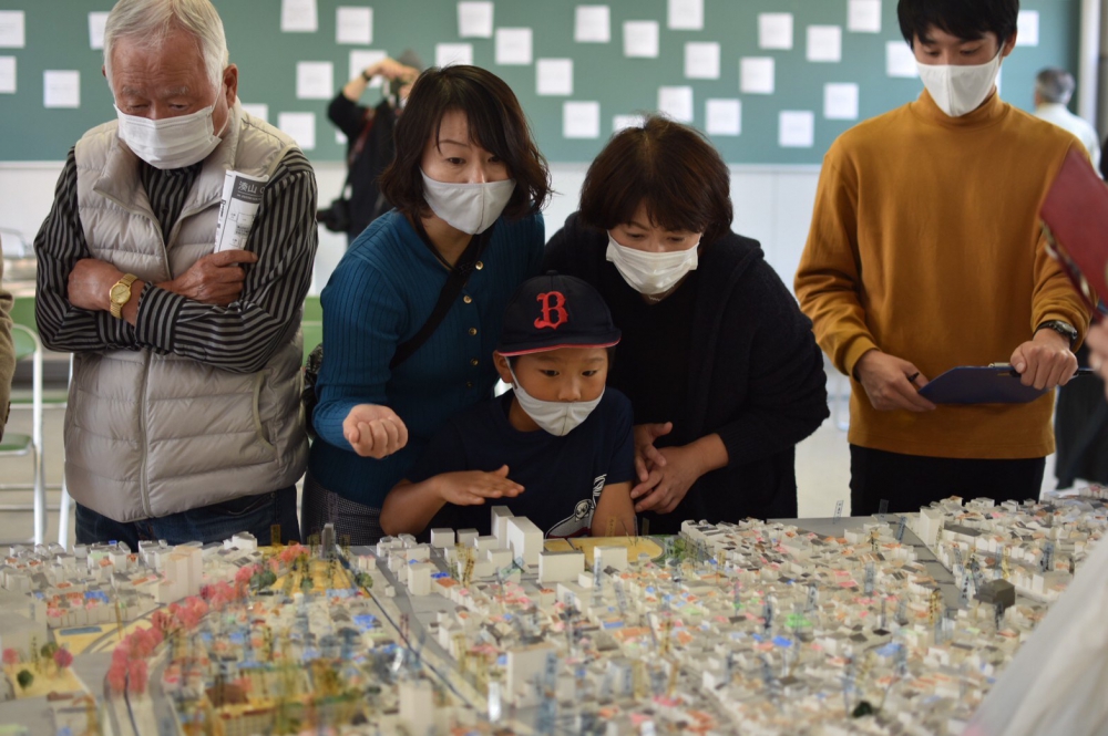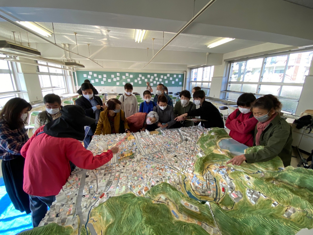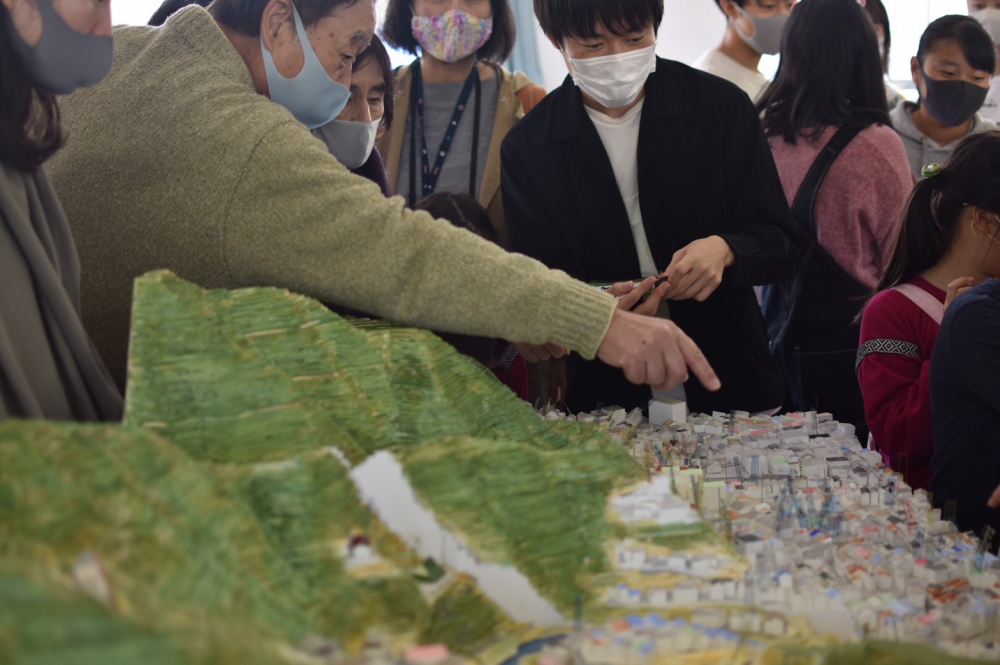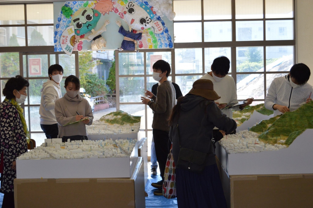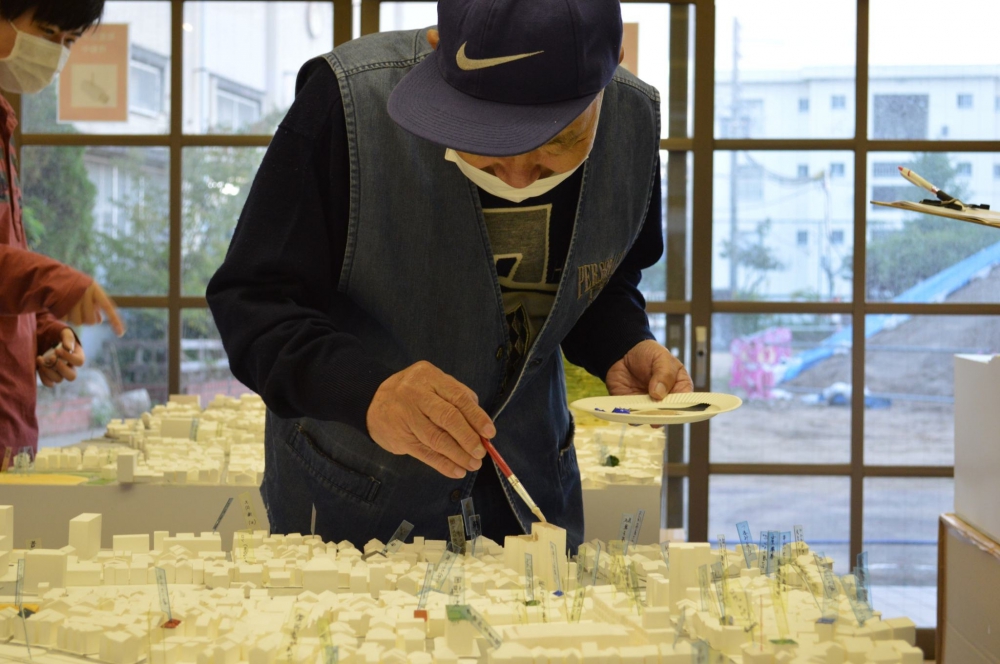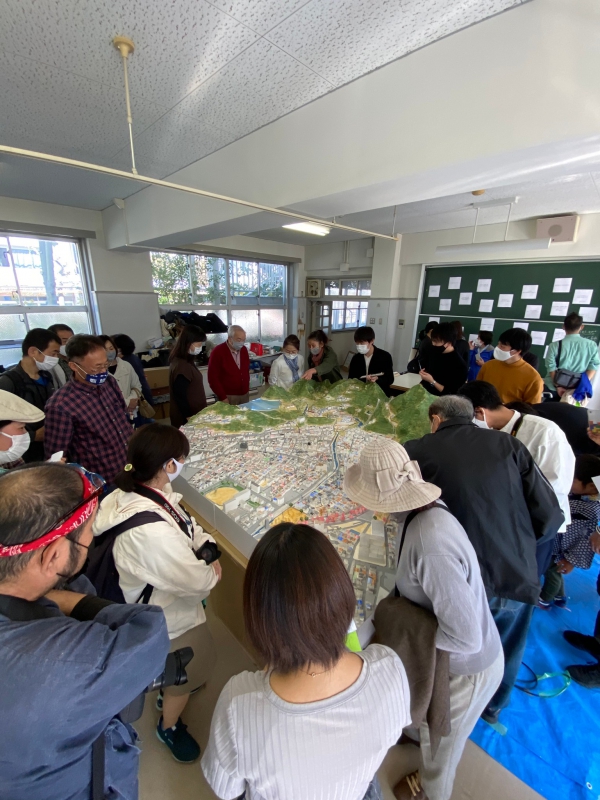 児童の減少により2015年3月に閉校した兵庫県神戸市・旧湊山小学校でワークショップを行いました。普段は入れない旧校舎内に模型を置いて、地域住民の方々から当時の思い出をお聞きしました。