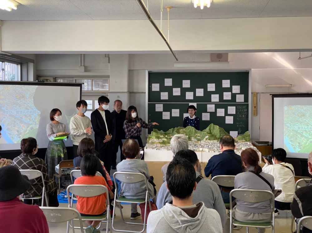 ワークショップは「湊山オープンスクール」のイベントの一つとして開催され、当日にはプレゼン形式で本活動を地域の方々に紹介する時間も設けられました。