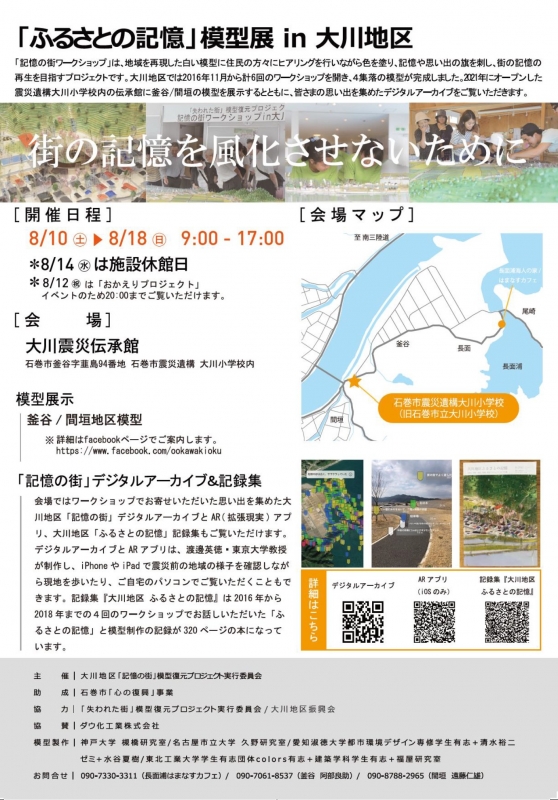 昨年に引き続き(一社)長面浦海人さんのイベントで、石巻市大川地区の釜谷・間垣地区の模型を展示していただきました。釜谷・間垣模型が大川震災伝承館で展示され、多くの方に見ていただきました。